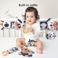 Built In rattle, Sounds and sensory. Foldable, easy to carry. Washable, non fading printed fabrics. Can be used in the crib, play gym, strollers or just as is in the hand. The colors specifically aid visual development.