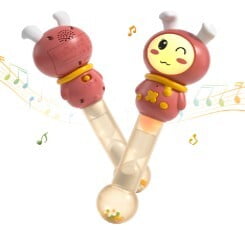 - The continuous shaking and gripping motions aid in the development of fine and gross motor skills